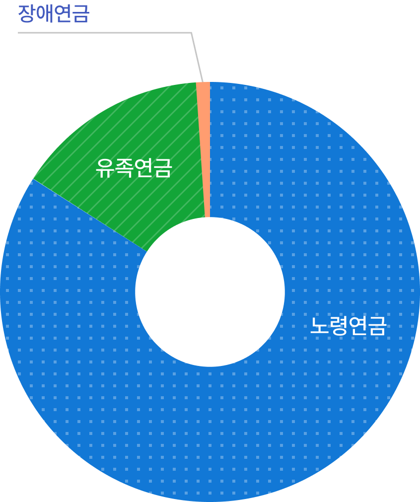 노령연금 84.05%, 유족연금 14.88%, 장애연금 1.07%